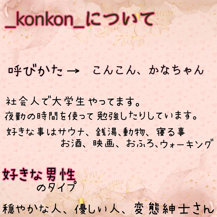 お仕事の事や住まいなど、しつこく詮索する方は苦手です。 相手の気持ちになって考えてから発言出来る人、優しい人に心を開きます❤️